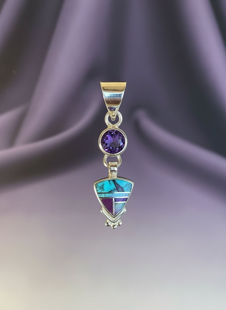 Inlaid Stones: 6mm round Amethyst, Turquoise, Opal (Cultured), & Sugilite