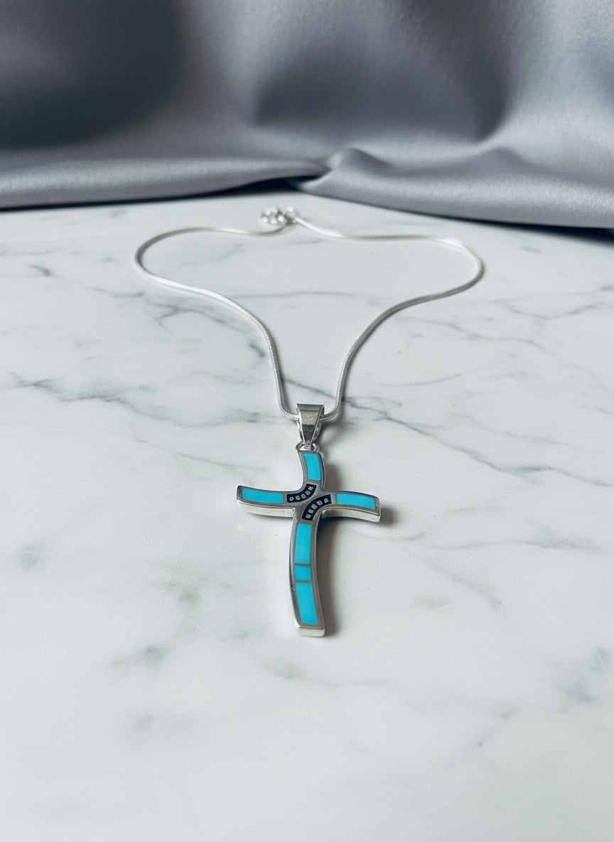 Pendent is approximately 1.5 inch long and 0.7 inch wide, comes with your choice of snake chain, chains available in 16-24 inch length