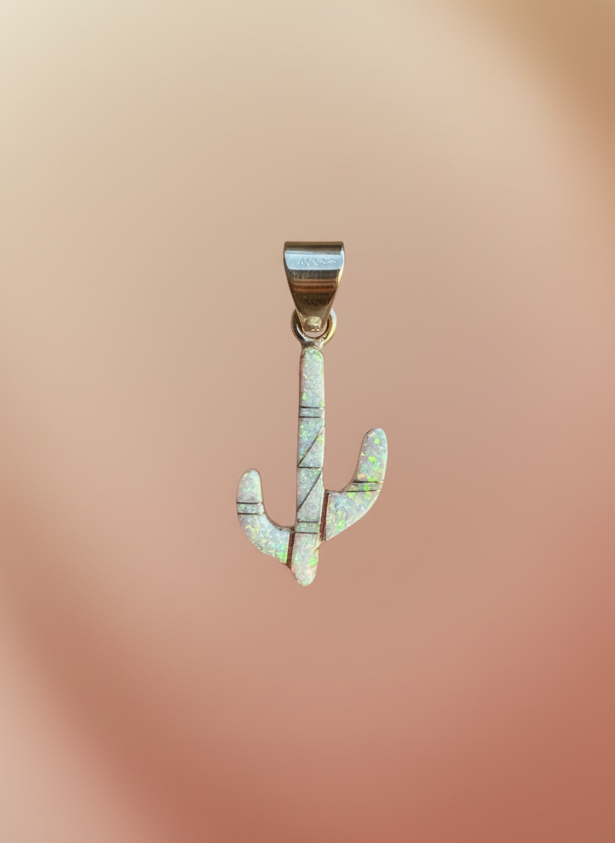 This is a double-sided cactus pendent, one side is Black Jade & Opal and the other side is white cultured opal