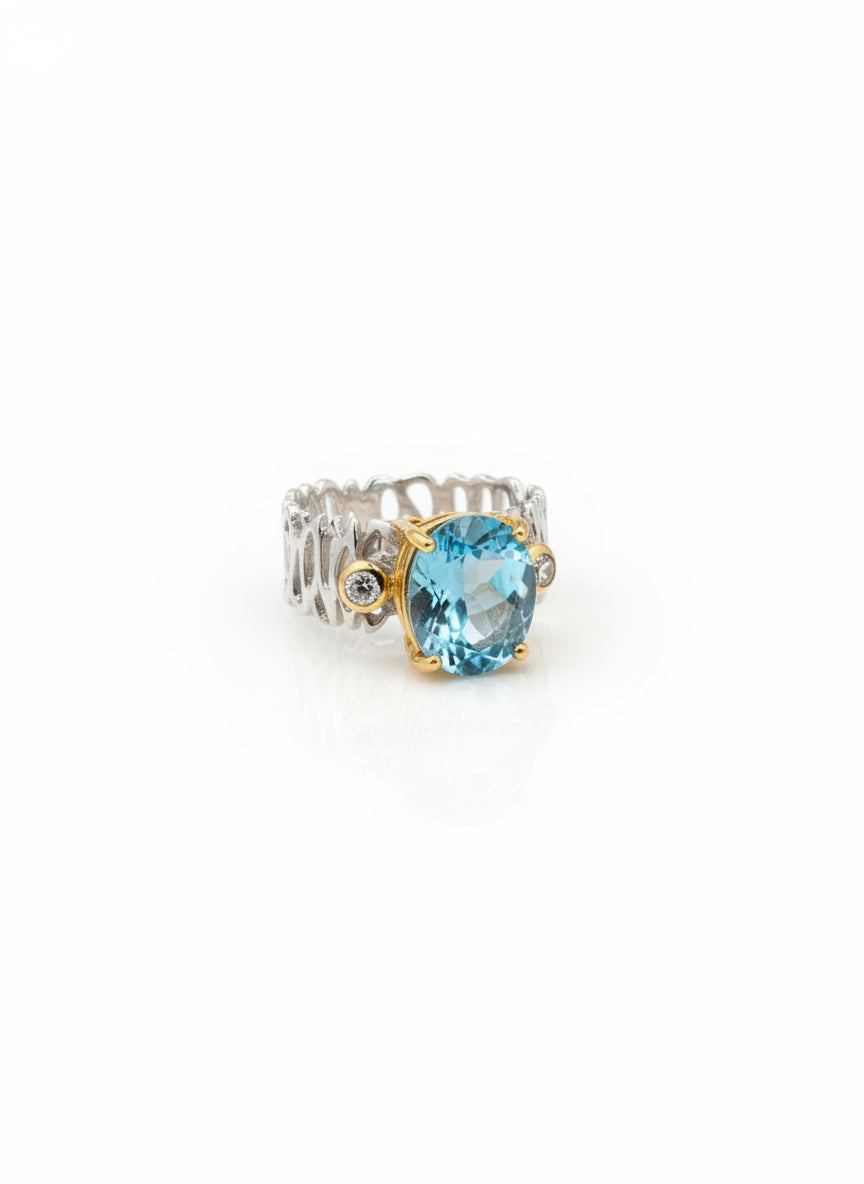 Stones: Oval 10x7 mm Blue Topaz & White Sapphire