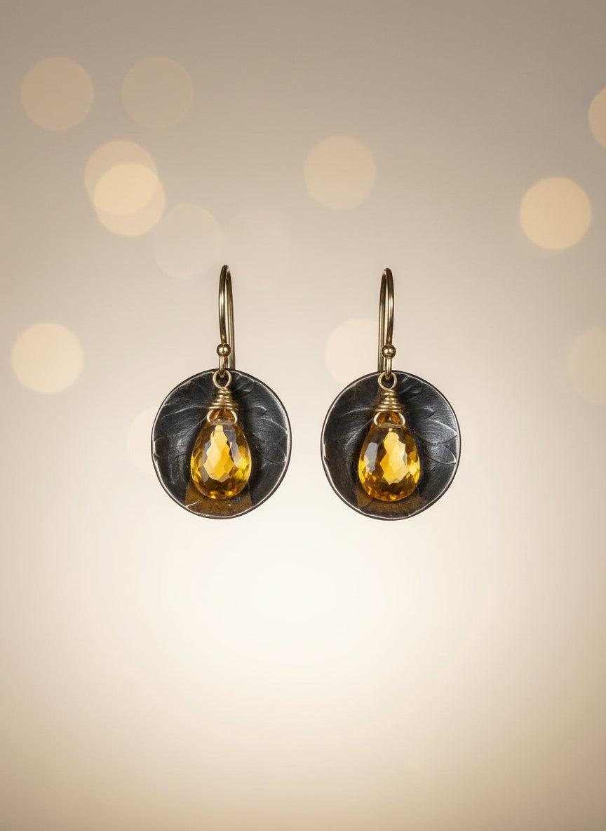 Base Metal: 925 Oxidized Sterling Silver with 24-Carat Gold Elements, 18-Carat Gold filled Wires
