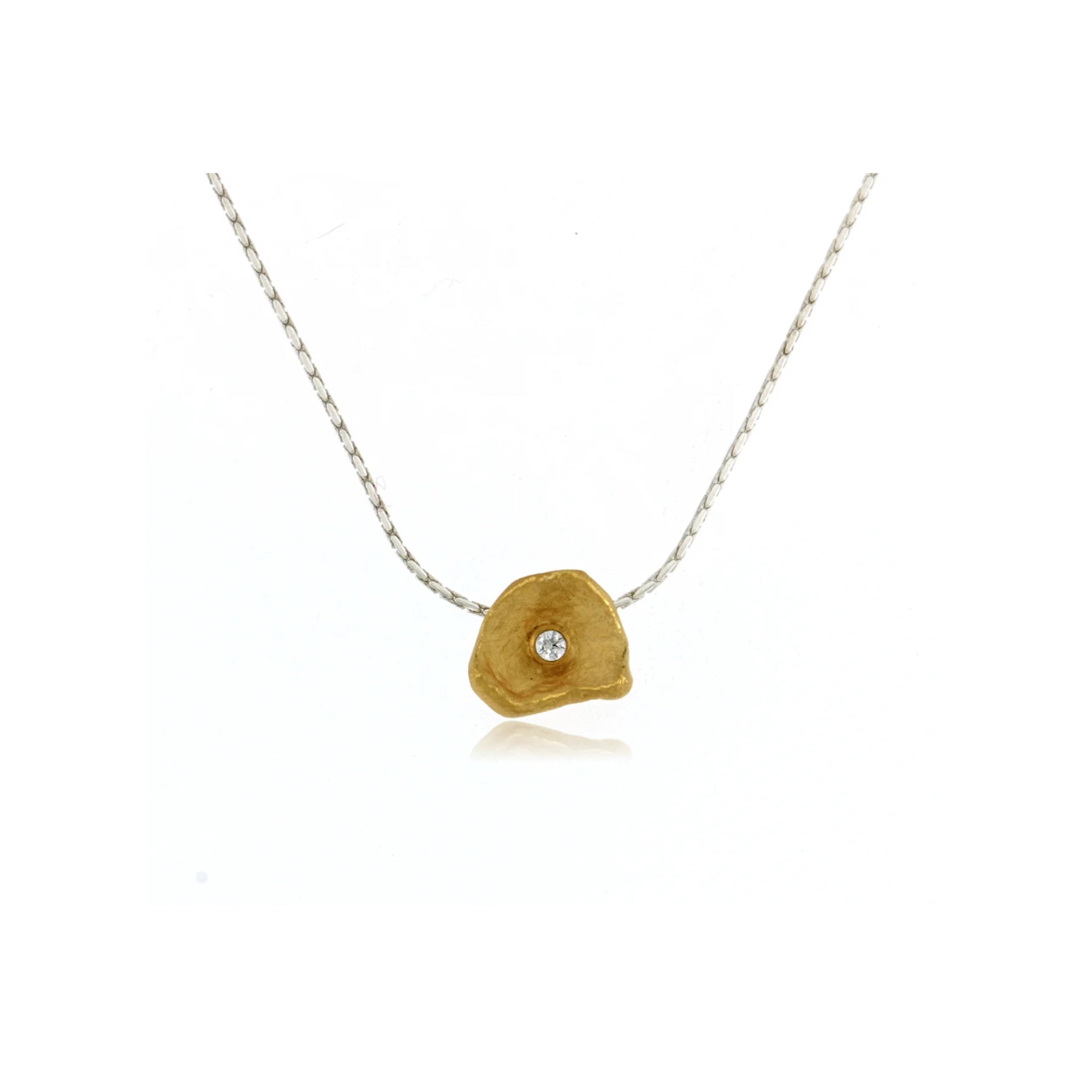 Petal Pendant – Gold & Silver Tone with Cubic Zirconia Accent (Small)