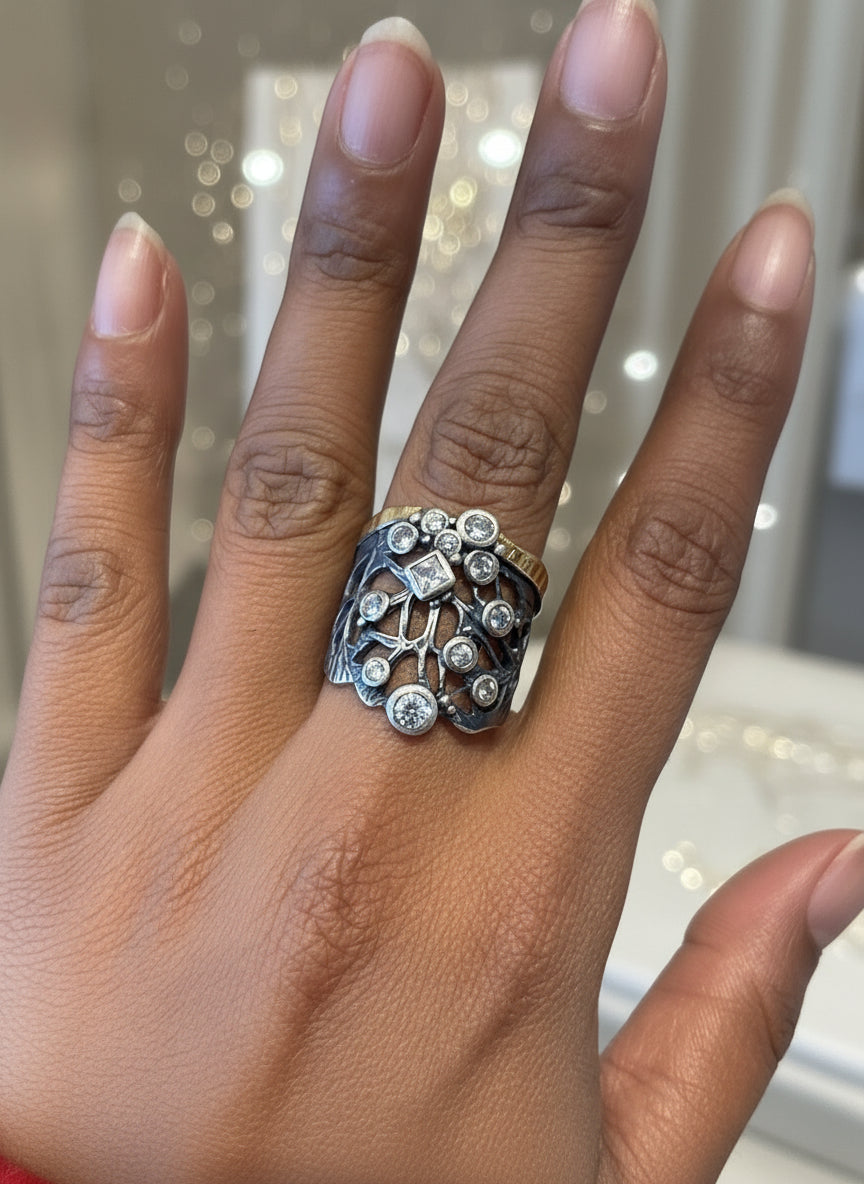 Handmade Branches Cluster Ring — Customizable Metals & Stones (Sterling Silver, Gold, CZ, & More)