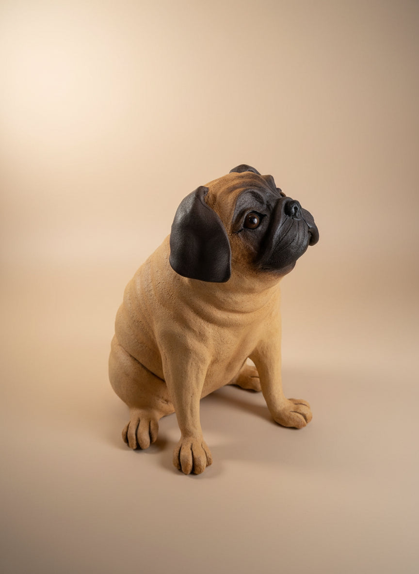 Handmade Ceramic Pug Sculpture by Sumati Colpitts