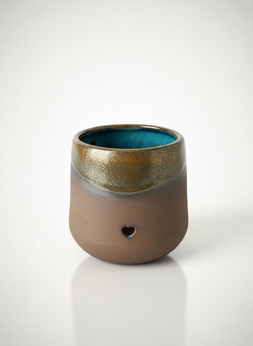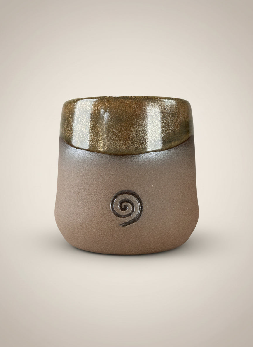 Handmade Ceramic Cup Double Sided Design, (Metallic Brown/Copper Color) made in Sedona Arizona by Natalia Sidorov