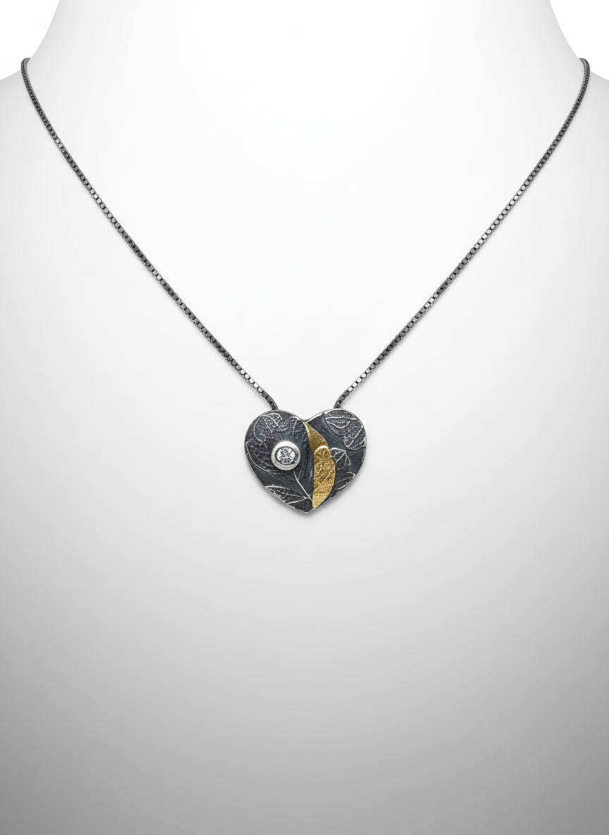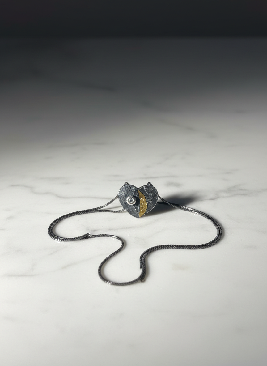 Base Metal: 925 Oxidized Sterling Silver with 24-Carat Gold Elements