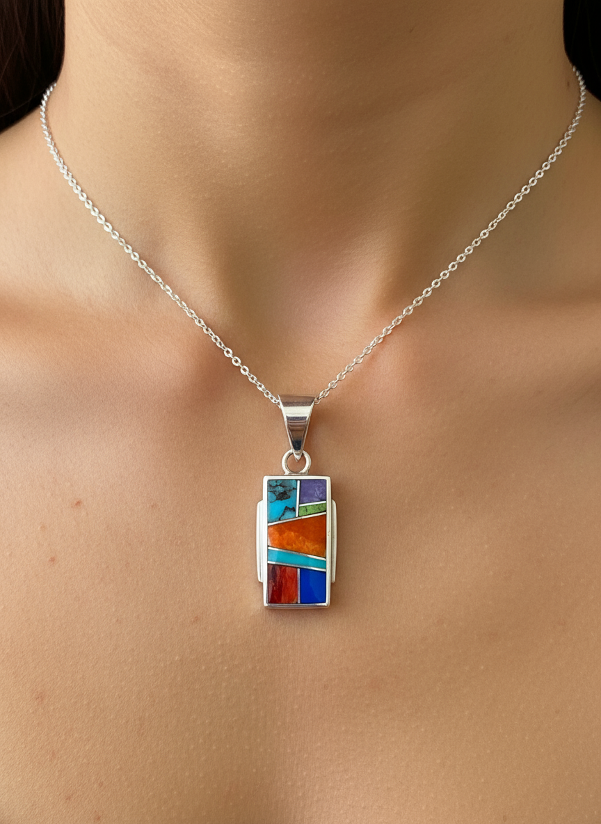 Inlaid Stones: Blue Topaz, Turquoise, Spiny Oyster, Sugilite, Gaspeite & Lapis