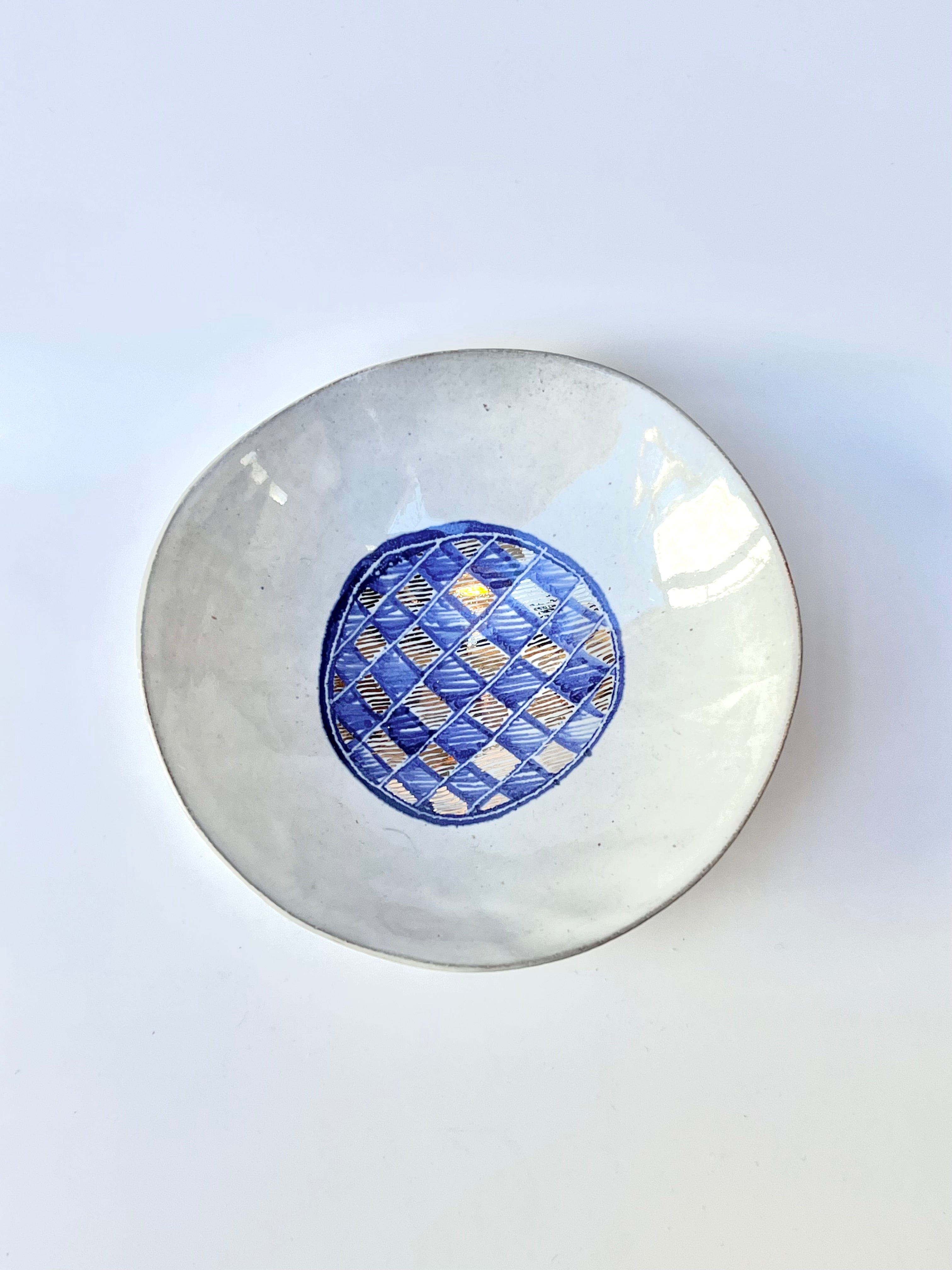One of the kind, handmade ceramics detailed with 18ct gold luster by South African ceramist Hennie Meyer. Large size bowl. Approximate size 5.5”x6”