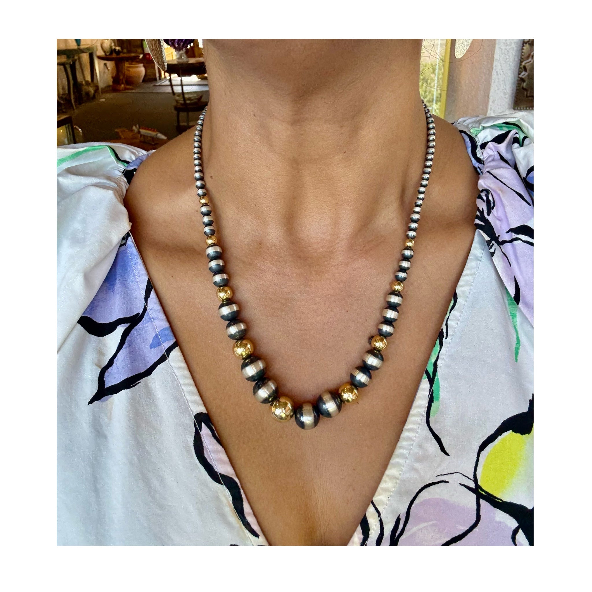 Bead Composition: Oxidized sterling silver beads (4mm–12mm) interspersed with gold vermeil beads
