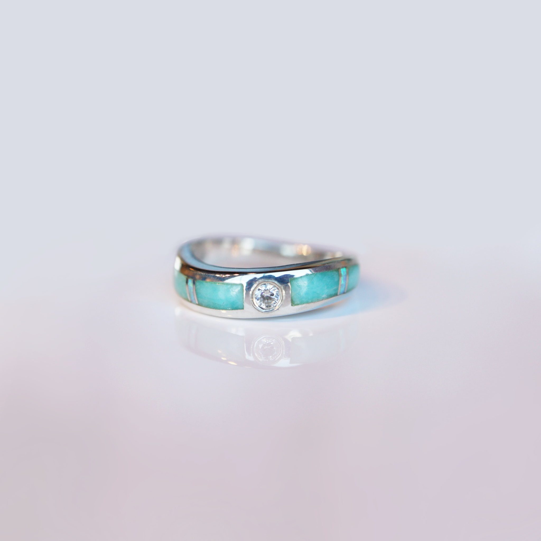 Opal & Amazonite inlaid stones, 2 mm CZ in the middle