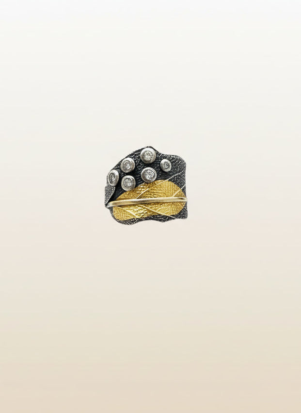 Base Metal: 925 Oxidized Sterling Silver with elements of 24-Carat Gold