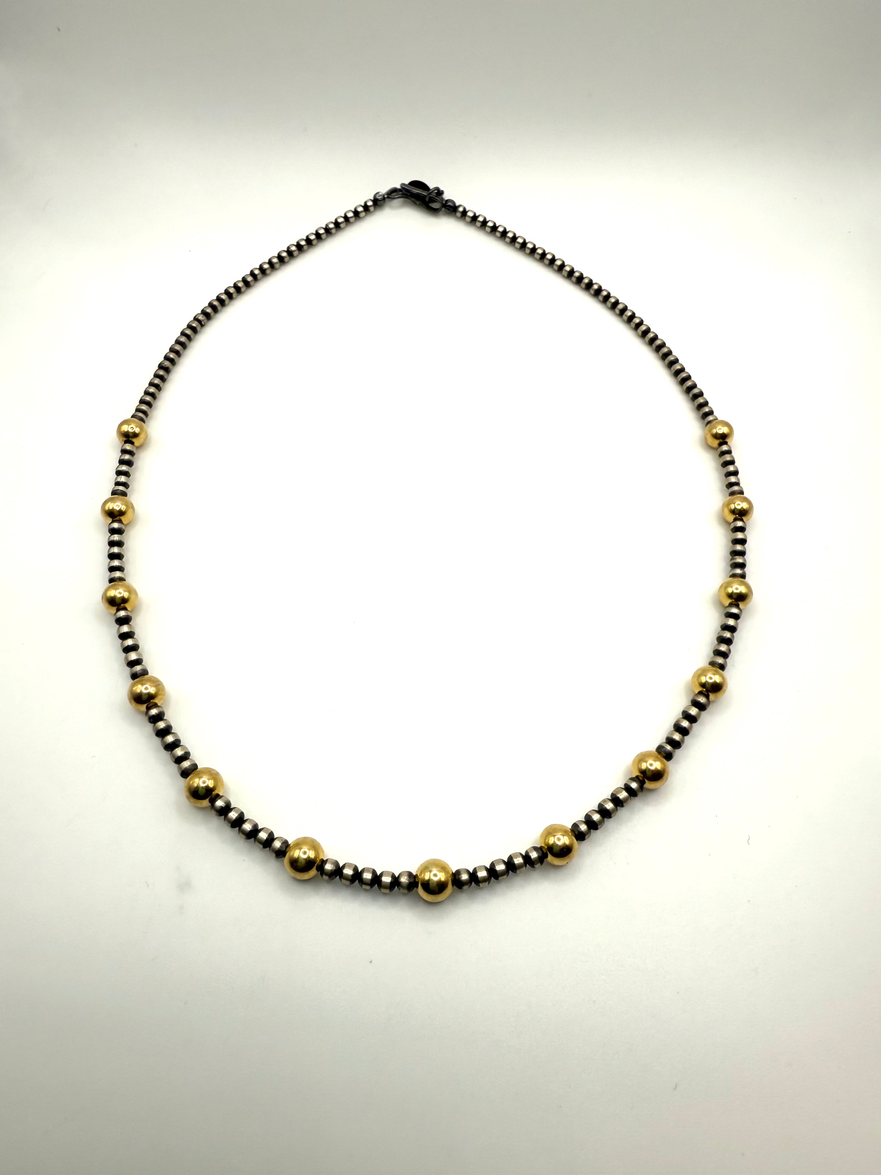 Materials: 3mm oxidized sterling silver beads & 6mm gold vermeil beads.