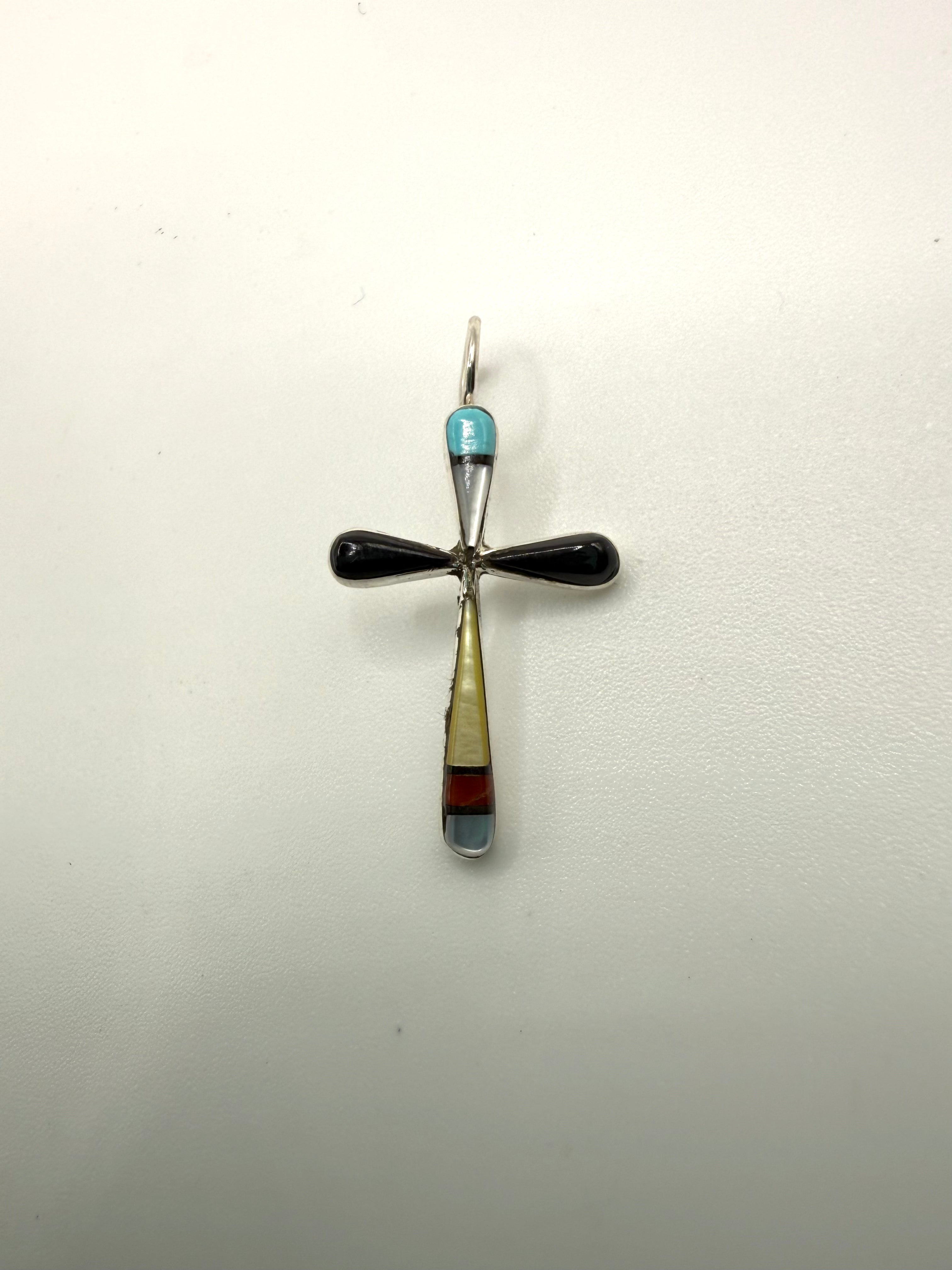 Materials: 925 sterling silver, Hand-cut mosaic inlay (stone arrangement varies slightly with each pendant)