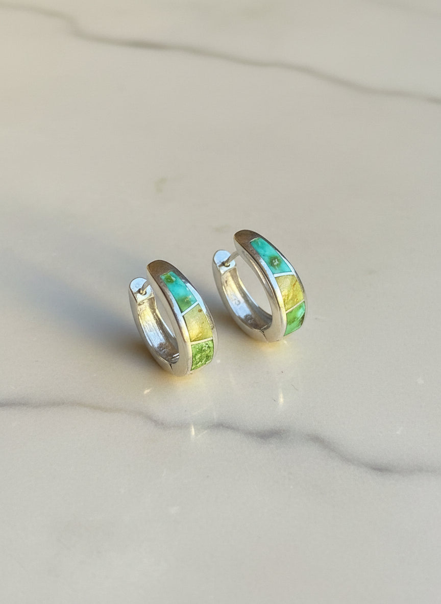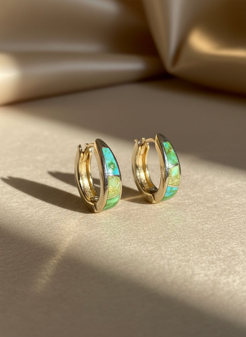 Sonoran Gold Turquoise Huggies Earrings - Navajo Stone Inlaid