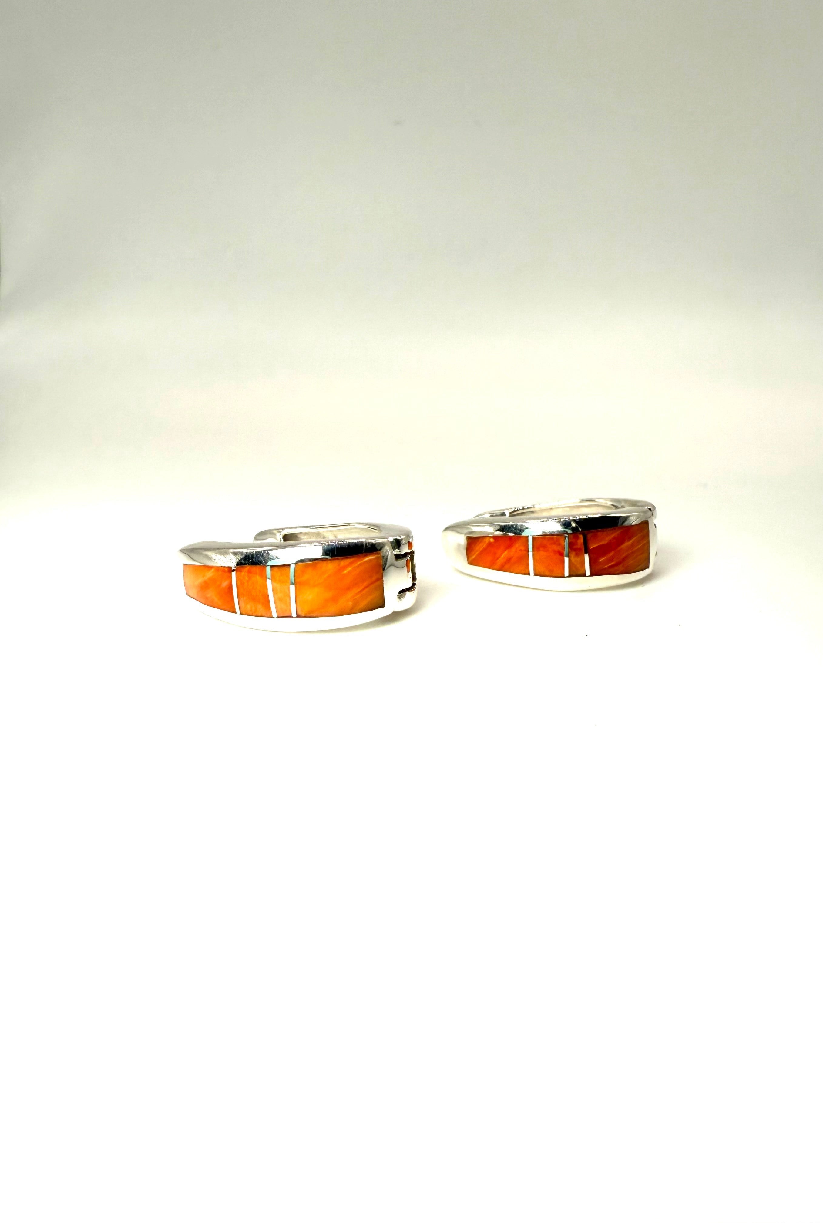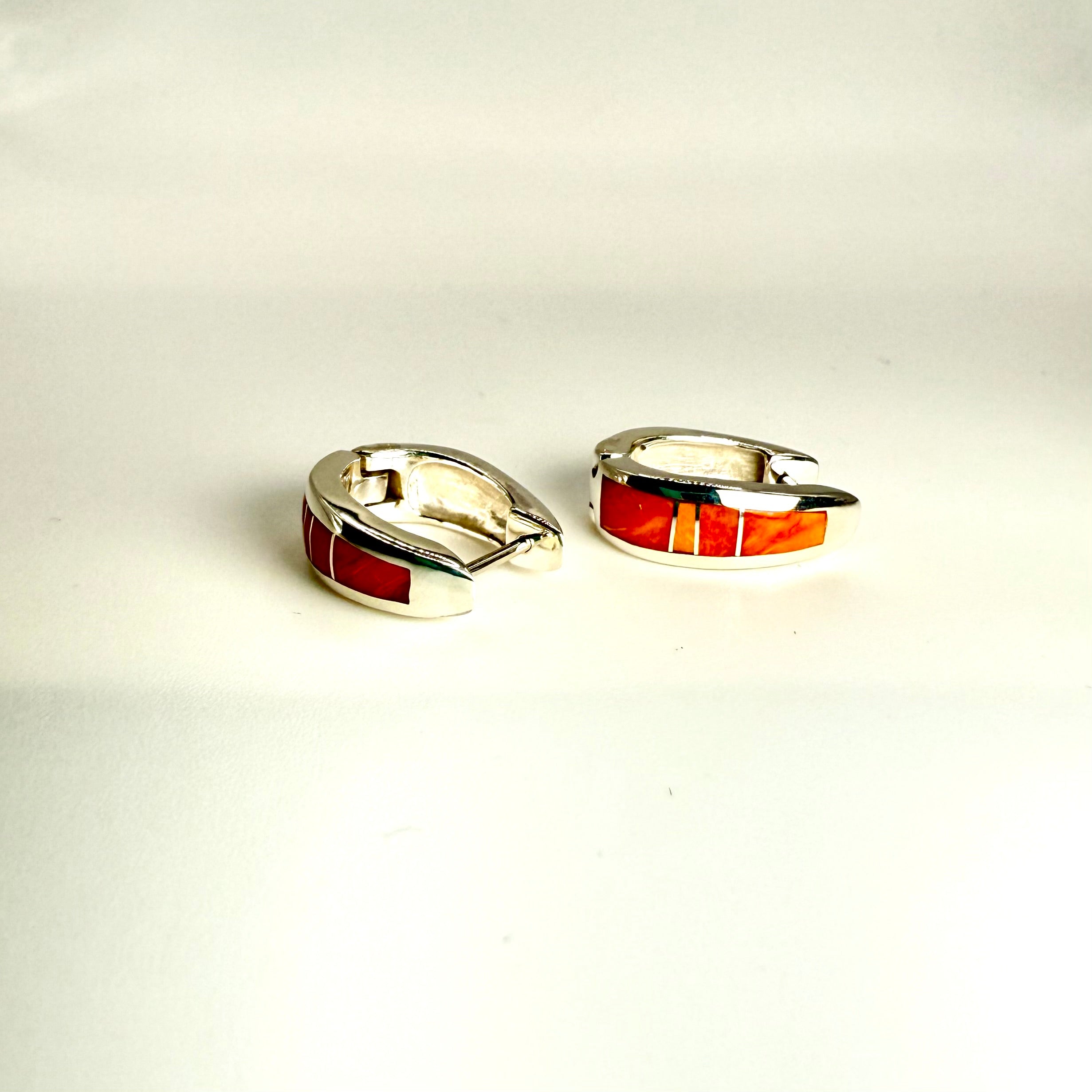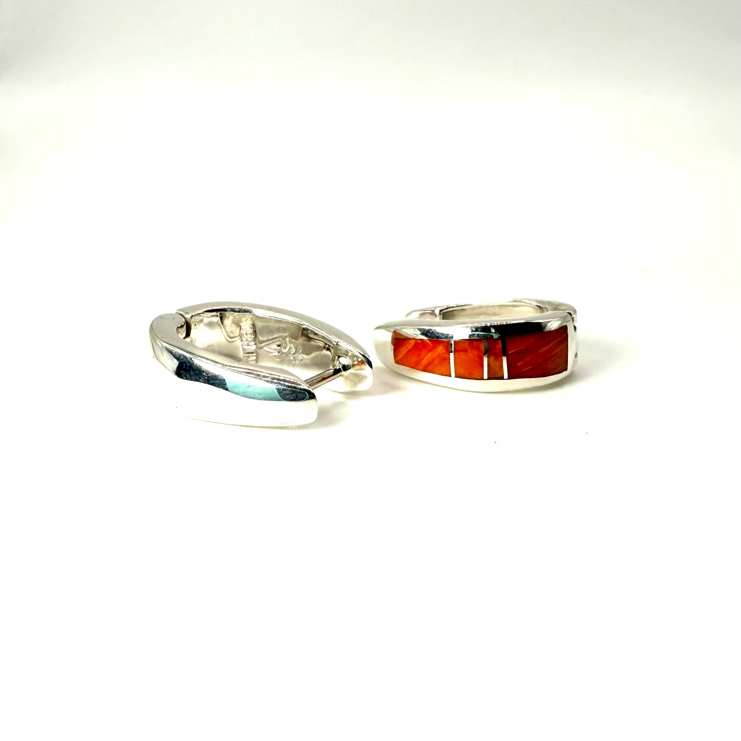 Spiny Oyster Huggies Earrings - Navajo Stone Inlaid