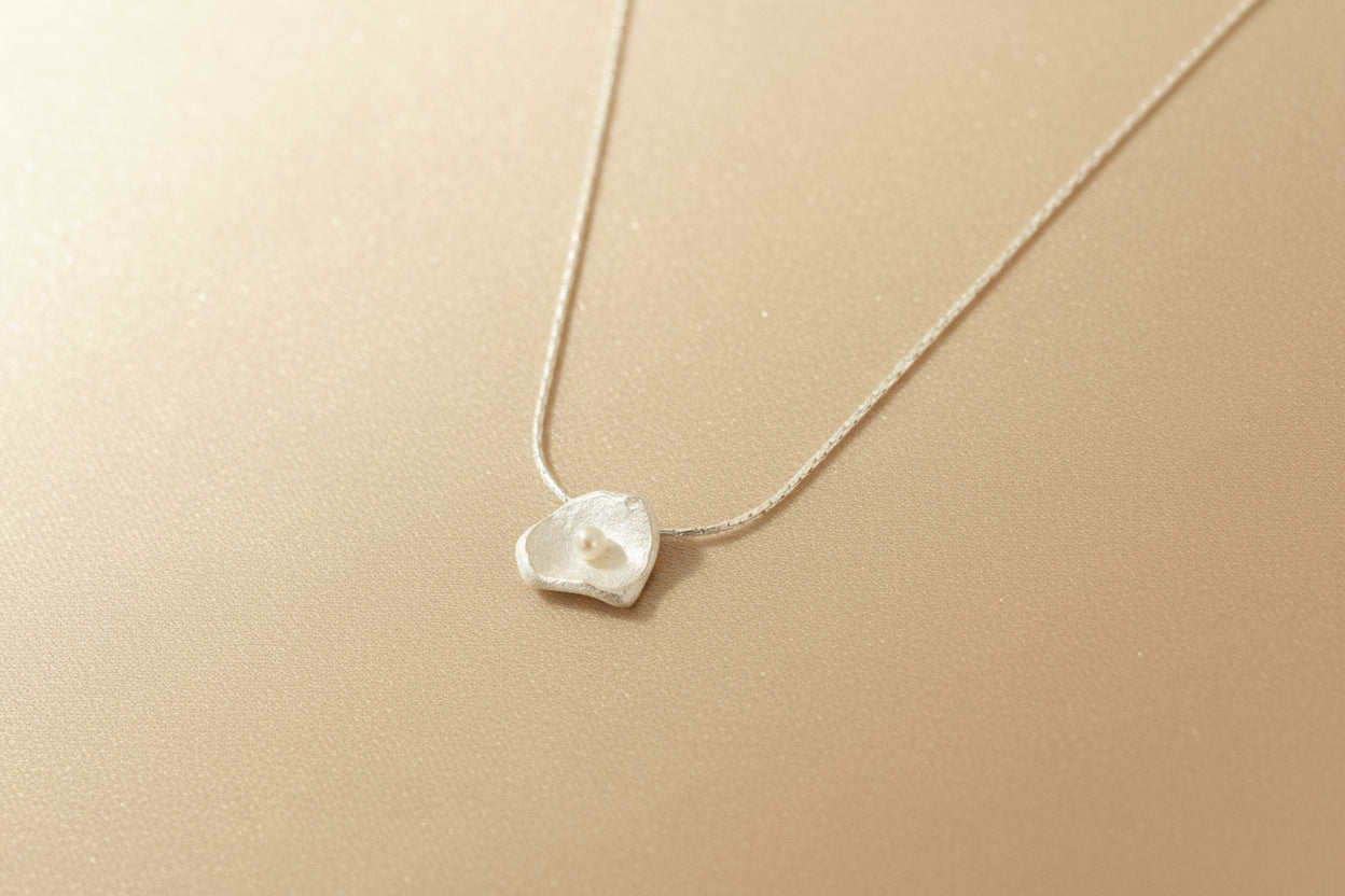 Sterling Silver Petal Necklace with Freshwater Pearl