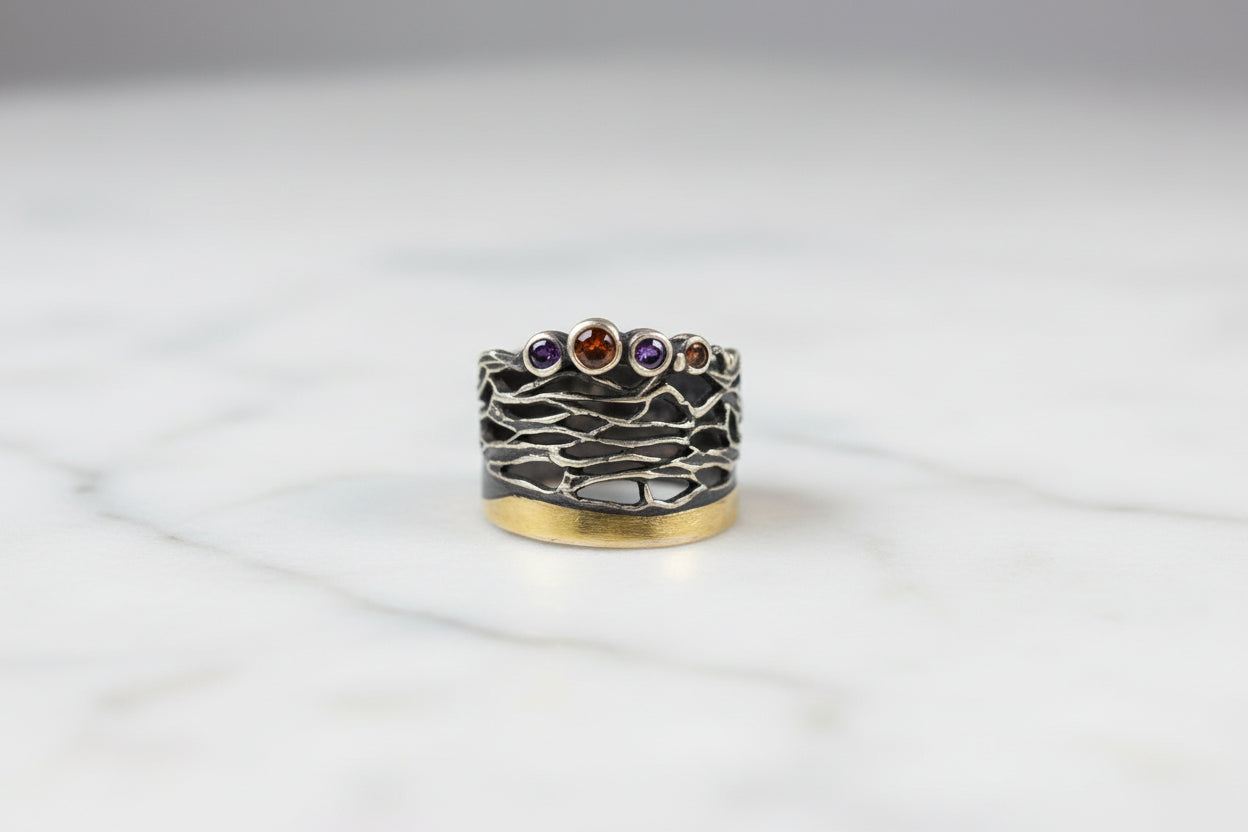 Base Metal: 925 Oxidized Sterling Silver with elements of 24-Carat Gold