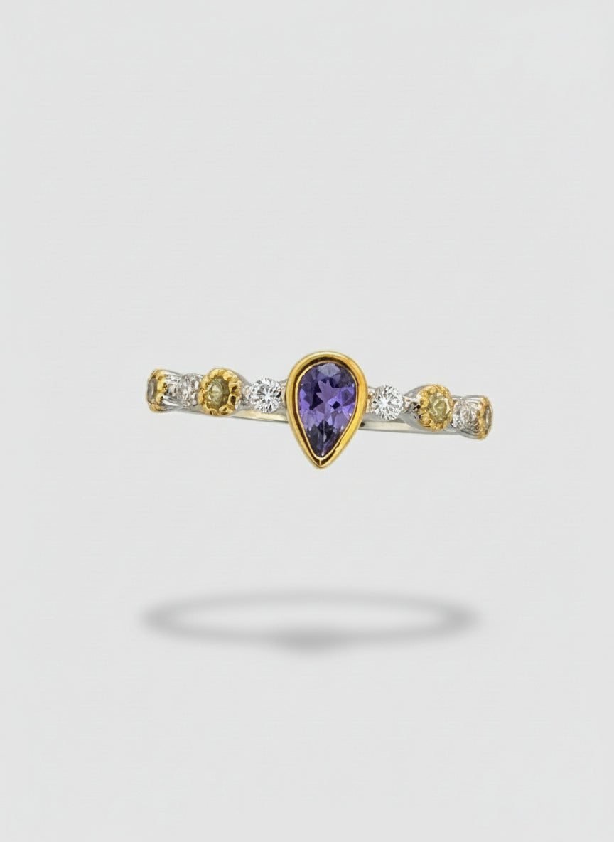 Stones: 5x3 mm pear shape Tanzanite & Blue Sapphires
