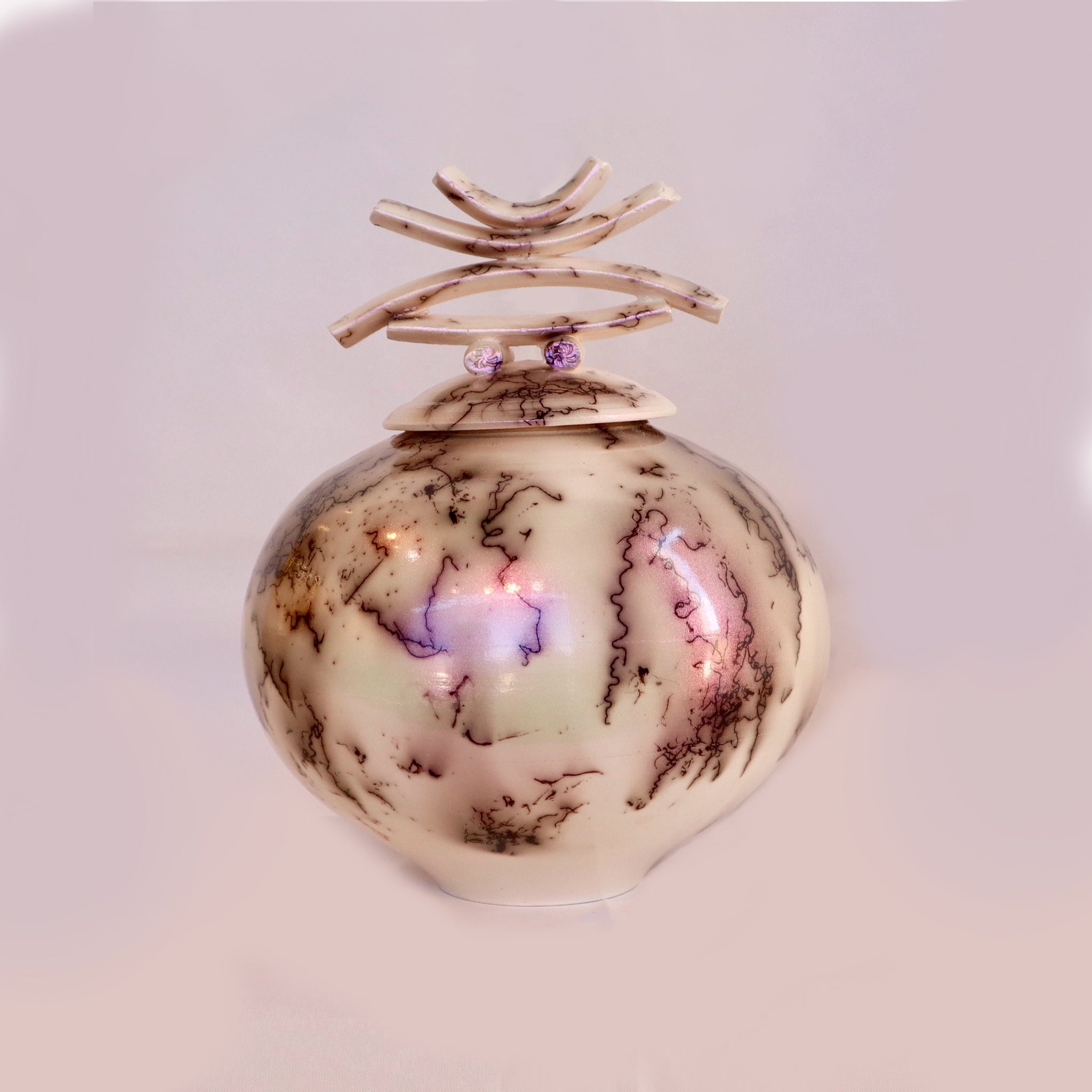 White Horsehair Ceramic Pot with Lid – Glossy Raku Vessel