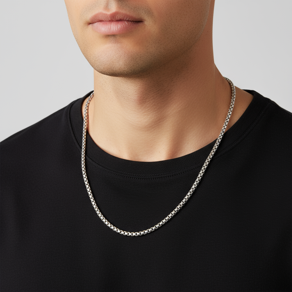 4mm Sterling Silver Box Chain Necklace 24-inch